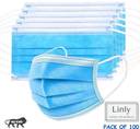 Linly 100 ply mask 100% certified Surgical Mask With Melt Blown Fabric Layer (Free Size, Pack of 100, 3 Ply)