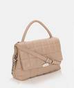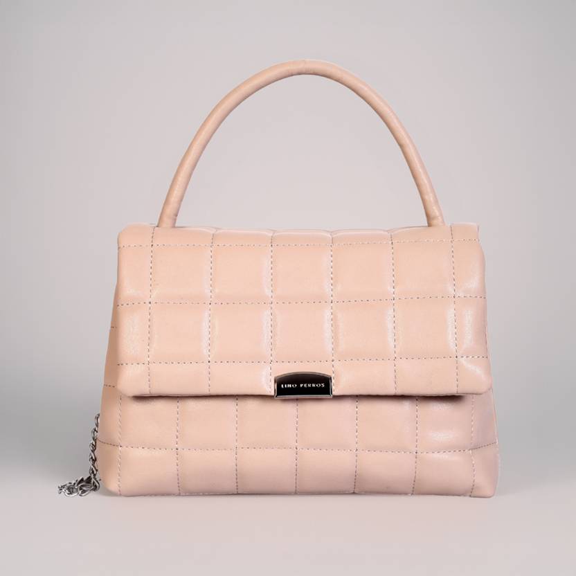 Flaunting A Stunning Beige Hue And A Quilted Pattern, This Handbag Is A Must-Have. Top Handle Of This Satchel Bag And Long Silver Colored Metallic Chain Makes It A Comfortable Choice To Carry As A Sling Bag As Well. The Interior With Two Compartments Is Roomy To Accommodate Daily Essentials Like Wallet, Small Purse, Phone Etc In A Safe Manner. Silver Colored Metallic Chain Adds To Its Charm. Carry It Day Or Night For A Standout Accessory Moment.This Stylish Latest Hand Bag Is Good Go With Your Fine Look. This Branded Lino Perros Bags Are A Must Have For All The Ladies/Girls.