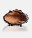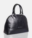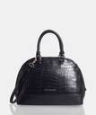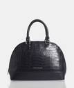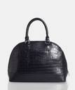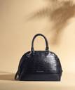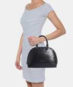 This black Croco textured satchel combines sophistication and style. Its structured and lightweight body makes it perfect for everyday use. The chrome/silver trims add a touch of elegance and a detachable strap makes it comfortable to carry as a shoulder bag. The interior is spacious enough to carry your phone, diary, keys, wallet, etc. This elegant bag can make your everyday look polished and chic. The branded Lino Perros bags for ladies are a must-have.