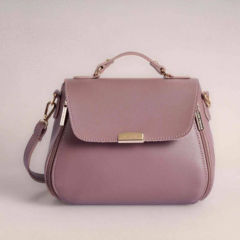 This fashionable lavender women structured handbag is elegant & minimalistic. The smooth grained pattern on the surface of its plain faux leather goes with both formal & casual look. The light gold finished hardware gives it a classy touch. It has a spacious compartment that could hold essentials like mobile phones, cards, makeup, etc. The branded Lino Perros bags are a must have for all the ladies/girls.