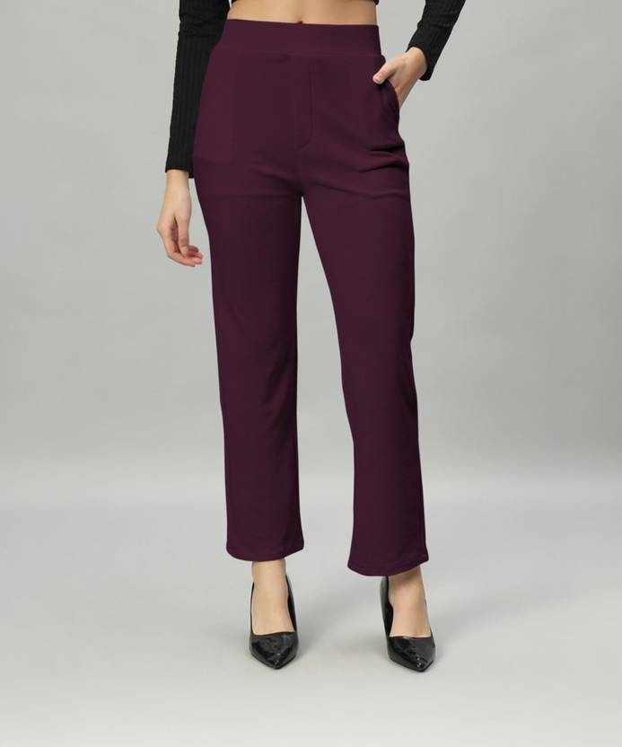 LINOGES Women Regular Fit Purple Lycra Blend Trousers