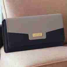 Sporting multiple compartments, this clutch is designed to hold currencies and other daily...