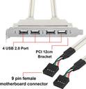LipiWorld 4 Ports USB 2.0 Header Port Slot Plate Panel Cable Female Screw to Motherboard 9pin Header Back PCI Rear Panel Bracket for Desktop Computer Expansion Card (Silver&Grey)