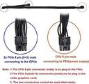 Male ConnectorCompatibility: Designed only for Corsair Modular Power Supplies RM/RMX/RMi/HX/HXi/AX/AXi/SF/TX/TX-M/CS/CS-M/CX/CX-M series. Compatible with PCI-E video card that has 8-pin 6-pin or 8-pin and 6-pin power socket. Note: Incompatible with AX1200.