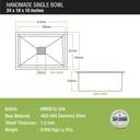 HANDMADE - Kitchen Sinks are skillfully handcrafted, have welded and slightly rounded corners to prevent dirt from getting stuck allowing hassle-free cleaning and cross grooves on the base to ease water drainage.