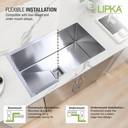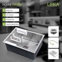 "LIPKA Handmade Single Bowl Kitchen Sinks are classic contemporary sinks that are handcrafted using quality 1.2mm Thick 304-Grade Stainless Steel offer more space, and come with a Vegetable Strainer, Waste Pipe, Sink Coupling and a Lifetime Warranty.
