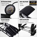 *Anti-slide and Easy to Store :It is very safe when you use our foot pump because it will be firmly fixed on the ground. And the anti-skid pedal increases the friction between your foot and pump, so you could use it without any slide problems. After use, close your pump and the built-in safety pedal locking clips will keep it steady and wouldn’t pop out in suddenly. Save you space and suitable for carry out in your car.