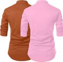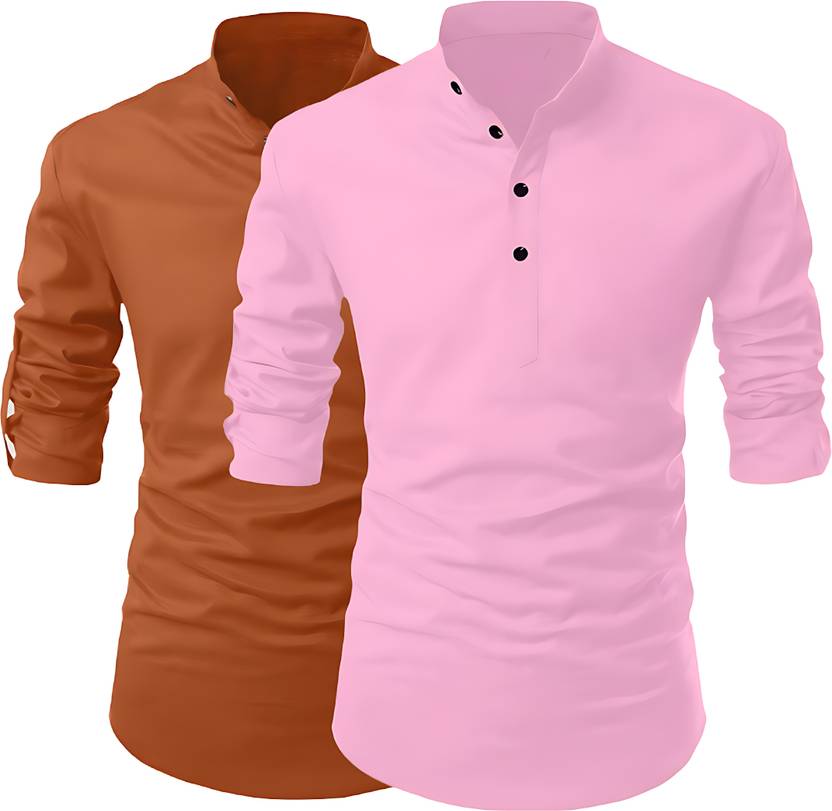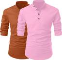 LIRMO Men Solid Pathani Kurta (Brown, Pink)