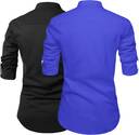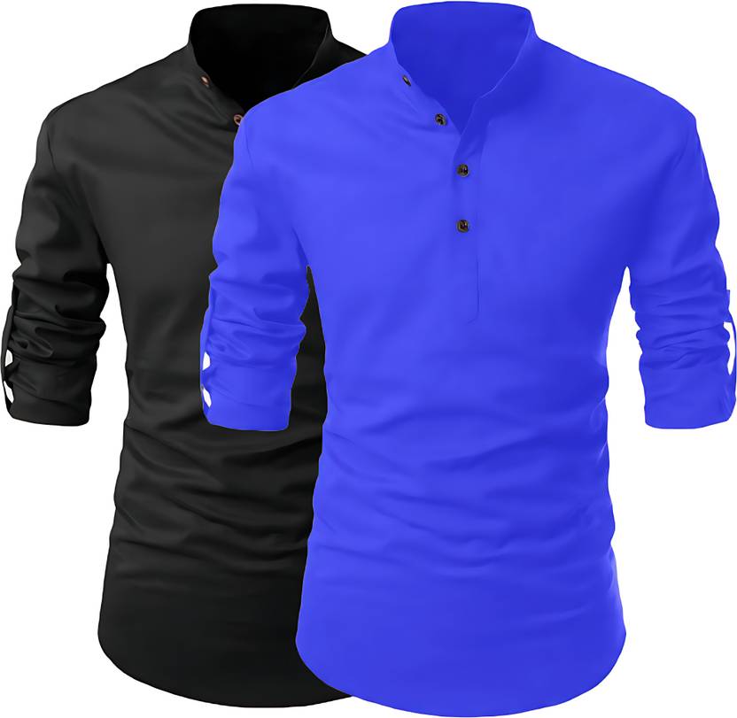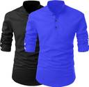 LIRMO Men Solid Pathani Kurta (Black, Dark Blue)