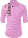 LIMRO Men Embroidered Cotton Blend Straight Kurta  (Pink)