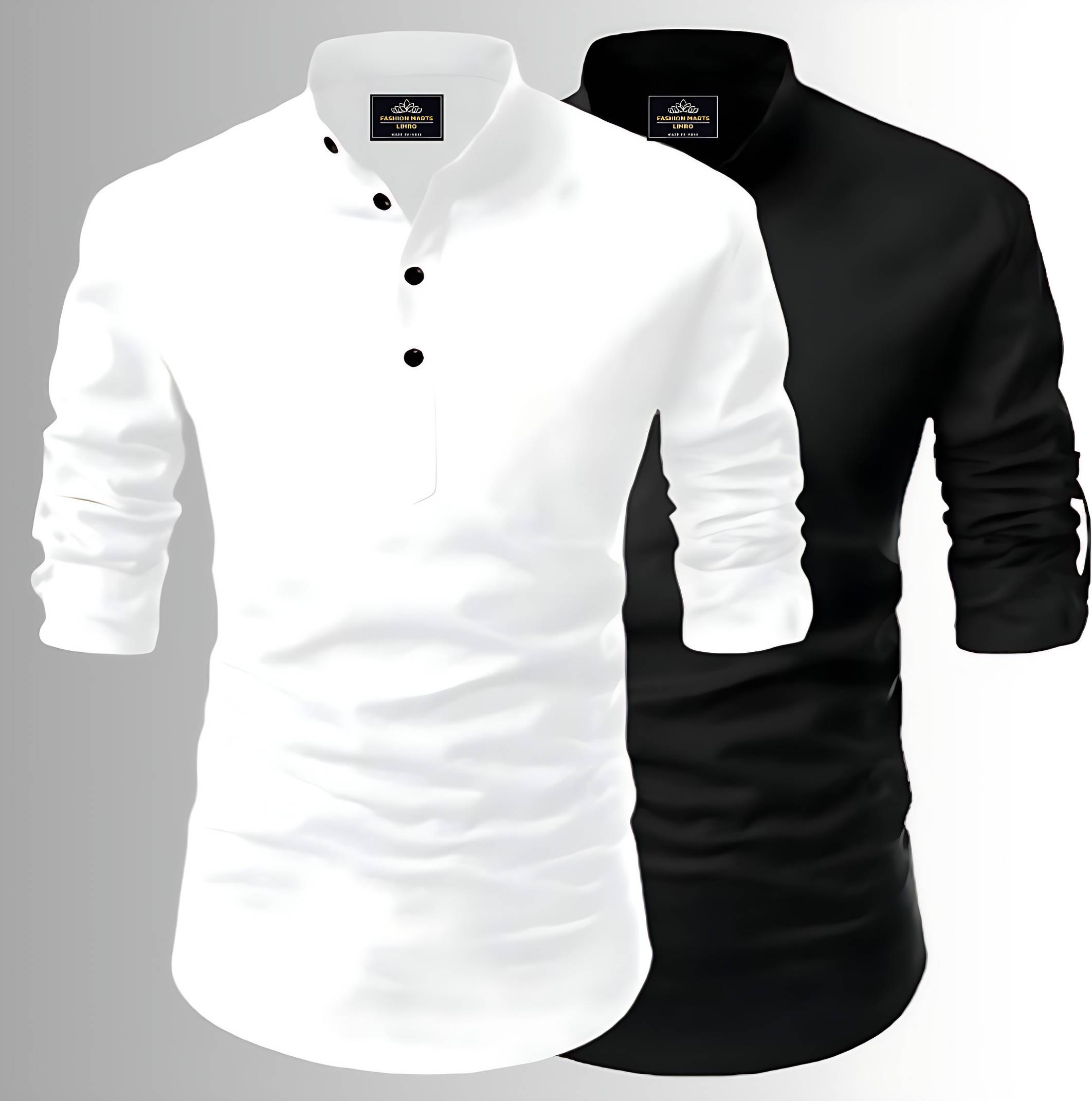 LIRMO Pack of 2 Men Solid Cotton Blend Straight Kurta  (White, Black)