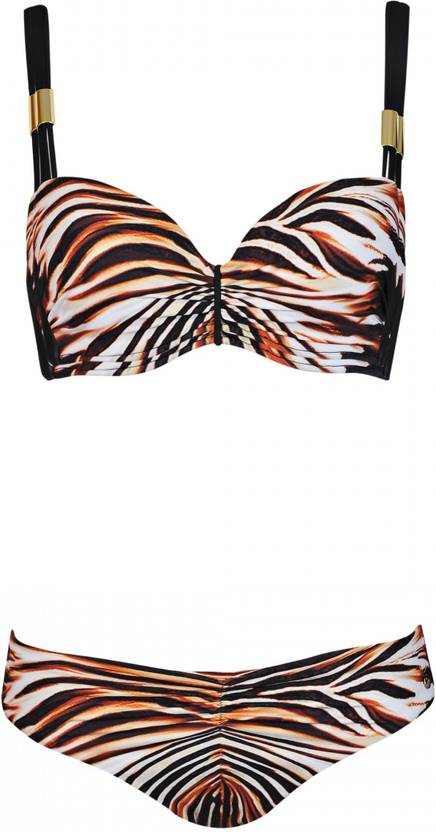 Bra & Panty Set Animal Print Brown, Black Lingerie Set