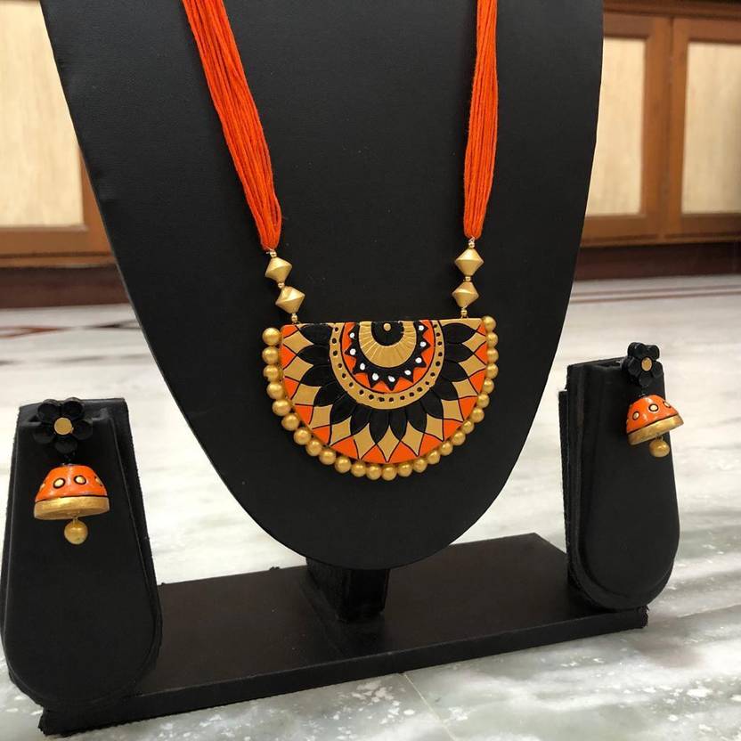 Lisma Fashion Terracotta Orange Jewellery Set (Pack of 1)
