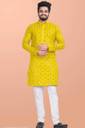 This is a 2-pieces set that includes a long kurta and a drawstring pajama. Traditional design on this kurta captures all of the details of the classic Indian men's garment with long sleeves.4. Suitable for: Party, Weddings, Regular Wear, Celebrations, Occasions, Festivals, Lohri, Pongal, Makar Sakranti, Baisakhi, Holi, Eid, Raksha Bandhan, Dussehra, Diwali, Navratri, Pooja, Christmas, Onam, Ganesh Chaturthi, Janmasthmi and Gifts for Mens.
