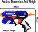 This gun is easy to operate - load the soft bullet or suction darts from the front muzzle, pull the lever at the back, trigger and fire. The magazine can load 4 foam bullet at one time to make the action look all the more real. It's super exciting and super cool shooting fun with the whole family, right in the cosy indoors, ideal for kids ages 5+ years 10 Soft Foam Bullets included Make of ABS Plastic which is nearly unbreakable Great fun for kids and the Gun built quality is very good