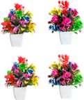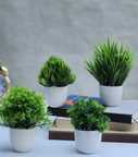 Litleo Set of 4 All Green Different For Home Office Or Decoration Bonsai Wild Artificial Plant with Pot (15 cm, Green)