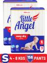 Little Angel Easy Dry Diaper Pants with 12 hrs absorption 78 Count/Pack,Pack of 2,4-8 Kgs - S (156 Pieces)