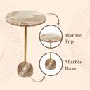 Offer your home a posh, sophisticated elegant accent with the side table. This bold end table was inspired by elegant minimalism, with a marble base and a simple, round natural marble tabletop. This glamorous table was handcrafted in India by skilled, passionate artisans out of authentic natural marble and resilient metal, giving it a look and construction that is unique from piece to piece. This marble side table is fabulous for serving cocktails on coasters, displaying decorative accents and keepsakes, or storing household items. The round accent table's overall dimensions are 35.50 cm wide by 35.50 cm deep by 58 cm tall, which makes it an excellent pairing with a couch, bed, entryway, or armchair. It makes a fantastic statement that will command attention without overpowering your other decor pieces. The side table is an excellent addition to any living room, bedroom, bathroom, dining room, or entryway. The three-step assembly process will make sure your new drink table will be ready in an instant. Disclaimer: No sets of marble are alike. Our marble tables are individually made by hand from solid marble slabs. The characteristics of this natural stone result in marble with grey veining, brown and the occasional pink or purple hue. This quality marble unifies the design of these modern side tables, completing the striking look.
