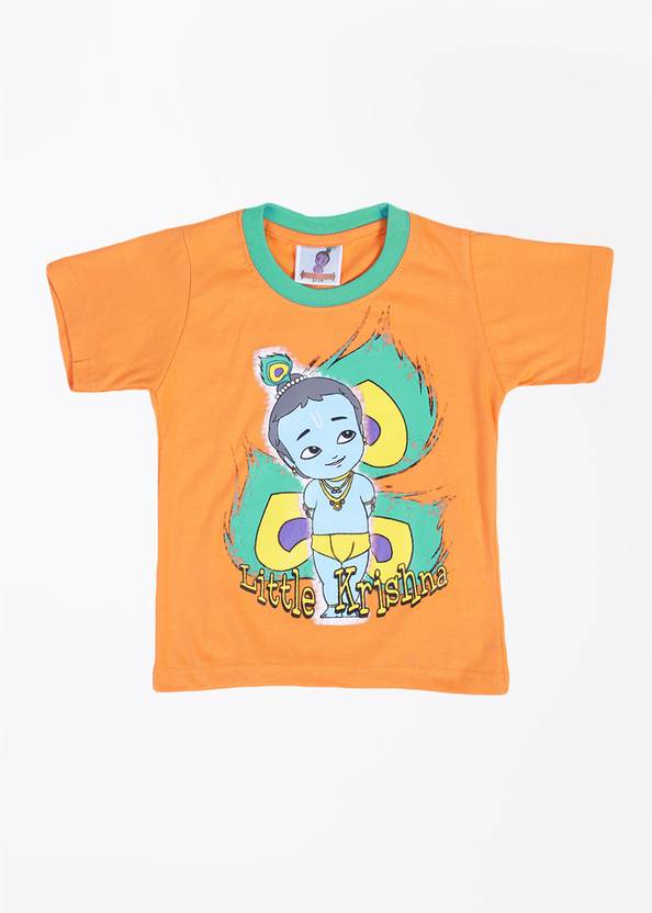 Boys Printed Regular T Shirt (Orange, Pack of 1)