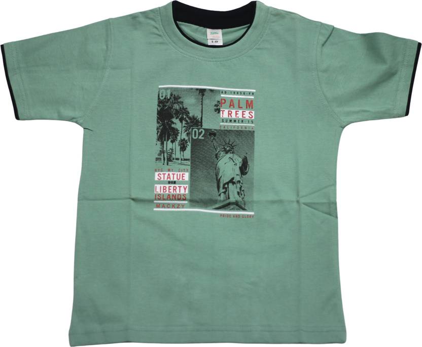 This charming boys' t-shirt features a striking graphic design that combines the iconic Statue of Liberty with palm trees, creating a unique summer aesthetic. The mint green base colour provides a fresh, contemporary look, while the black trim on the sleeves adds a stylish contrast. Crafted from soft cotton material, this t-shirt ensures comfort for everyday wear. The front graphic includes text elements reading 'Palm Trees' and 'Liberty Islands', along with a '02' detail, giving it a casual urban vibe. The round neckline and short sleeves offer a classic t-shirt silhouette that's perfect for warm weather. The graphic print showcases an artistic blend of photography and typography, making it an appealing choice for young fashion enthusiasts. This versatile piece can be easily paired with shorts, jeans, or casual trousers for a complete casual look. The t-shirt's relaxed fit allows for comfortable movement throughout the day.
