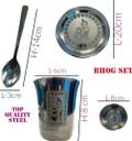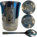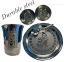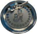 Little Me Pack of 5 Stainless Steel Krishna Printed Stainles Steel Dinner/Bhog Set Dinner Set (Silver)