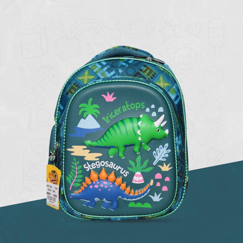 DINASOUR SCHOOL BAG 3D Bag FOR KID FOR 1ST AND 2ND CLASS COLOR GREY