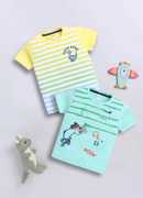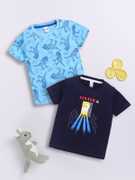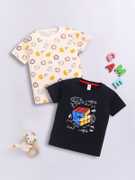 LITTLE NINJA Baby Boys Graphic Print Pure Cotton Regular T Shirt (Multicolor, Pack of 2)
