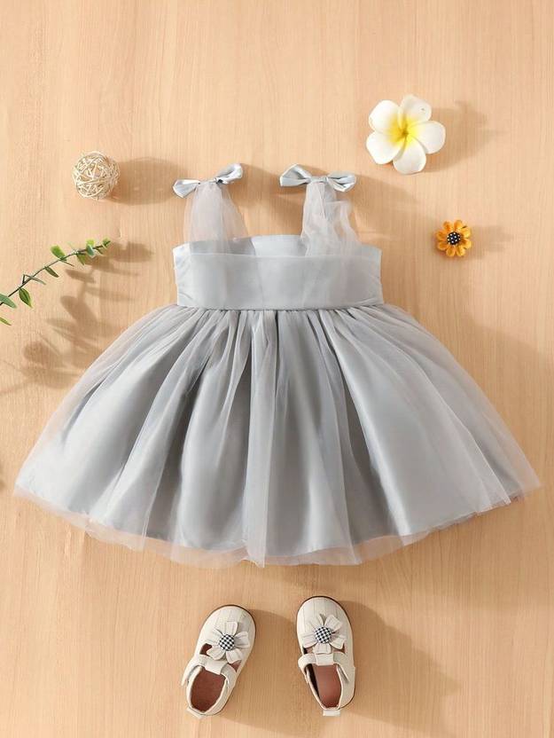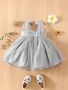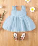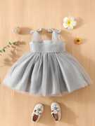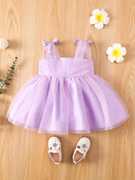 Baby Girl Bow Shoulder Mesh Overlay Cami Dress.