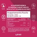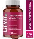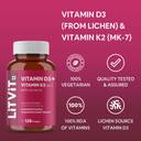 LITVIT Vitamin D3 K2 Tablets (Plant Based) with Veg Vitamin D 600 IU & Vitamin K2 MK7 (120 Tablets)