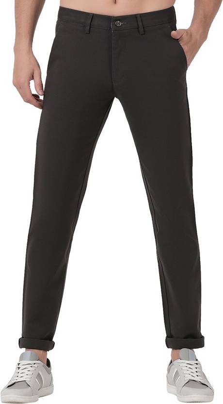 Men Slim Fit Grey Cotton Blend Trousers