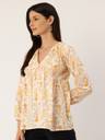 This stylish peasant top features a soft and breathable fabric with an all-over floral print, making it perfect for everyday wear. Designed with a relaxed fit, gathered neckline, and elasticated sleeves, it offers both comfort and effortless style. Ideal for casual outings, work, or travel, this versatile top can be easily paired with different bottom wear for a chic look.