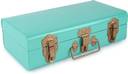 livingwithelan Vintage Metal Long Trunk, Decorative Box, Storage Chest, Gold Latches (Aqua) Metal Trunk (Finish and Fabric Color - Aqua, Knock Down)