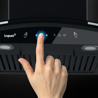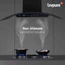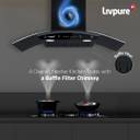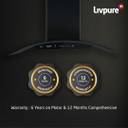 LIVPURE Elega-90 Auto Clean Curved Glass 90 cm| 6 Years Motor Warranty|Heat Autoclean| Gesture Control| Baffle Filter|Powerful Suction | Low Noise Wall Mounted Black 1300 CMH Chimney
