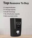 This water purifier has a large storage capacity of 7 L, which is capable of satisfying the water needs of a big family.
