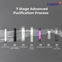 The seven-stage purification process of the Livpure water purifier includes sediment filters, carbon blocks, RO membrane, UV disinfection, and ultra-filtration to remove bacteria, viruses, and heavy metals from the water. It eliminates all kinds of contaminants making the water safe for drinking.