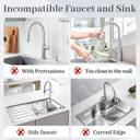 Measure Before Purchasing: Please measure the faucet and sink size before purchasing to ensure a perfect fit! The size of faucet splash guard is 14.6" x 5.5" , The diameter of faucet hole is 2.5 inches. The silicone draining mat for sink can be used in all faucet base less than or equal to 2.5 inches
