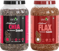 LIVYOR Combo Chia Seeds & Flax Seeds for Weight loss - Protein and Fiber Rich Super Food Chia Seeds, Brown Flax Seeds (2 x 400 g)