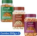 LIVYOR Raw Cashews, Almonds, Raisins (3 x 200g ) | Mix Dry Fruits Combo Pack Cashews, Almonds, Raisins (3 x 200 g)