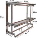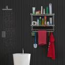 Features: The wall mount rack comes with protective railing on each tier ensure to keep bottles from slip or fall off. Keep items in place which saves the time and hassle of searching through cabinets for ingredients and products. It comes with 4 hooks to hang your cutleries, brushes, freshners and a towel holder rack at the bottom.