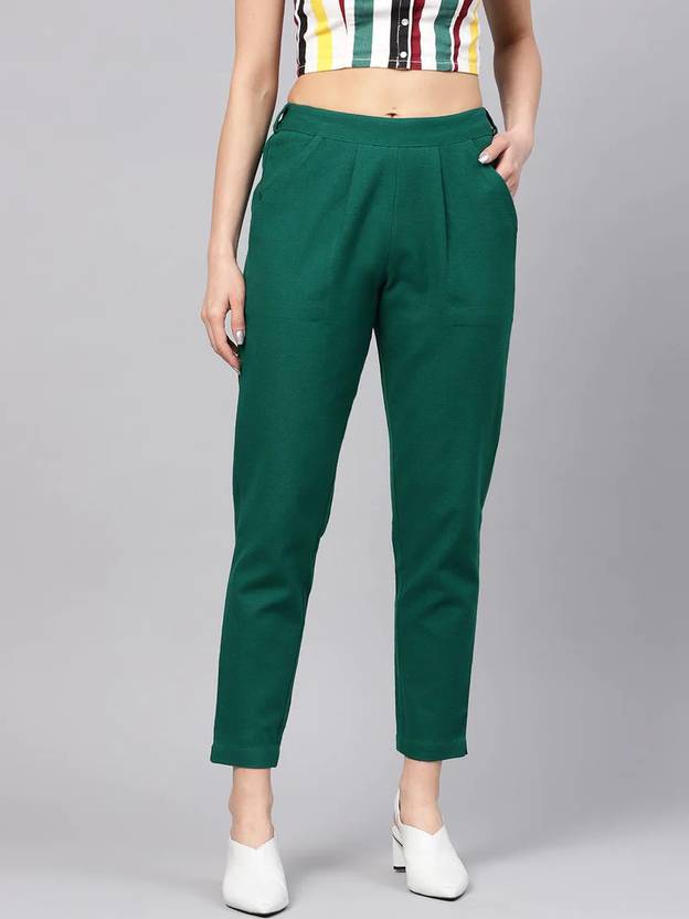 Zareeman Women Regular Fit Dark Green Pure Cotton Trousers