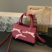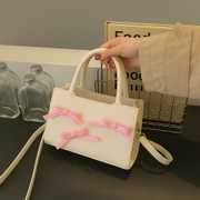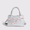 Adorned with cute bow accents on the front, this handbag stands out with its feminine charm. The sturdy top handle and detachable strap provide versatile carrying options—carry it by hand or wear it crossbody for convenience.