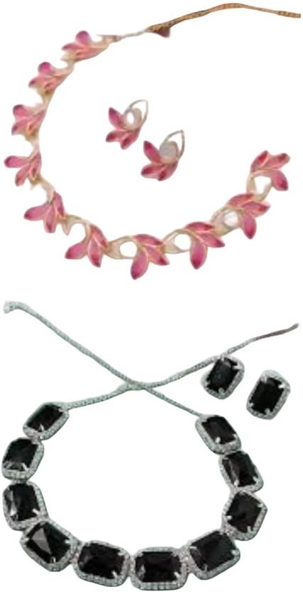 LJ CREATION Alloy Pink, Black Jewellery Set (Pack of 2)