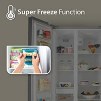 Equipped with a Super Freeze function, this refrigerator facilitates a rapid decrease in the temperature of the freezer, ensuring that your food freezes fast. This makes it easy for you to preserve food items like cheese, frozen snacks, fish, meat, and more.