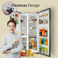 Combining user-friendly features with ample storage capacity, the Lloyd Frost Free Side by Side Refrigerator is a must-have. The Fleximax glass shelves of this refrigerator offer sufficient storage to keep neatly organised containers of varying shapes and sizes. Built with an inverter compressor, this refrigerator maintains a balanced temperature for long-lasting freshness. Moreover, its sophisticated technology ensures low-noise and energy-efficient performance. Besides, this fridge has a double vegetable and fruit box that allows you to store all your groceries.