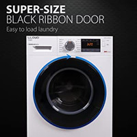 Boasting a large black ribbon door, this washing machine offers plenty of space to accommodate a large load capacity. And, the superior looks of the door make it look elegant.