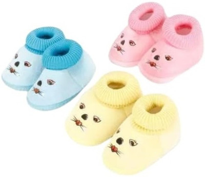 LMN CHILD CARE presents Baby Booties For Your Little One. These Booties Are Comfortable And Has Attractive Design.These Booties Will Help In Keeping Baby's Feet Protected In Any Season. Since These Are Made Out Of Soft velvet Fabric. They Do Not Have Any Harmful Effects On The Child'S Sensitive Skin. Do Not Wait, Booties Length 10 CM.It Will Fit For 0 - 6 Month Old Baby.