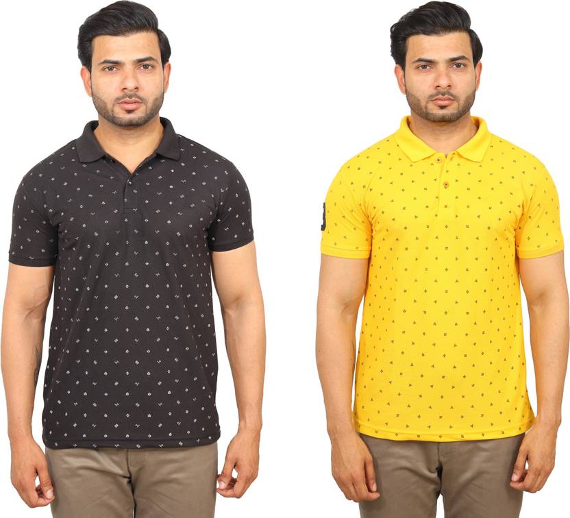 LO G LO Pack of 2 Men Printed Polo Neck Polyester Multicolor T-Shirt