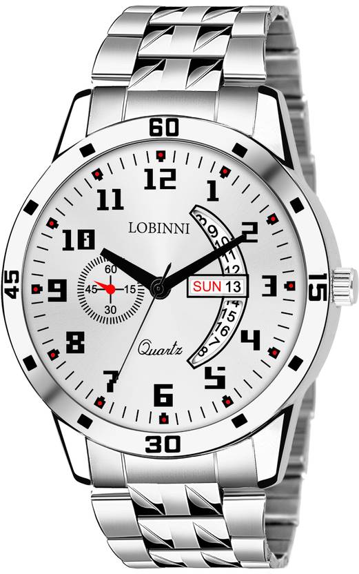 LOBINNI White Round Dial Day & Date Functioning Analog Watch - For Men LO 2413