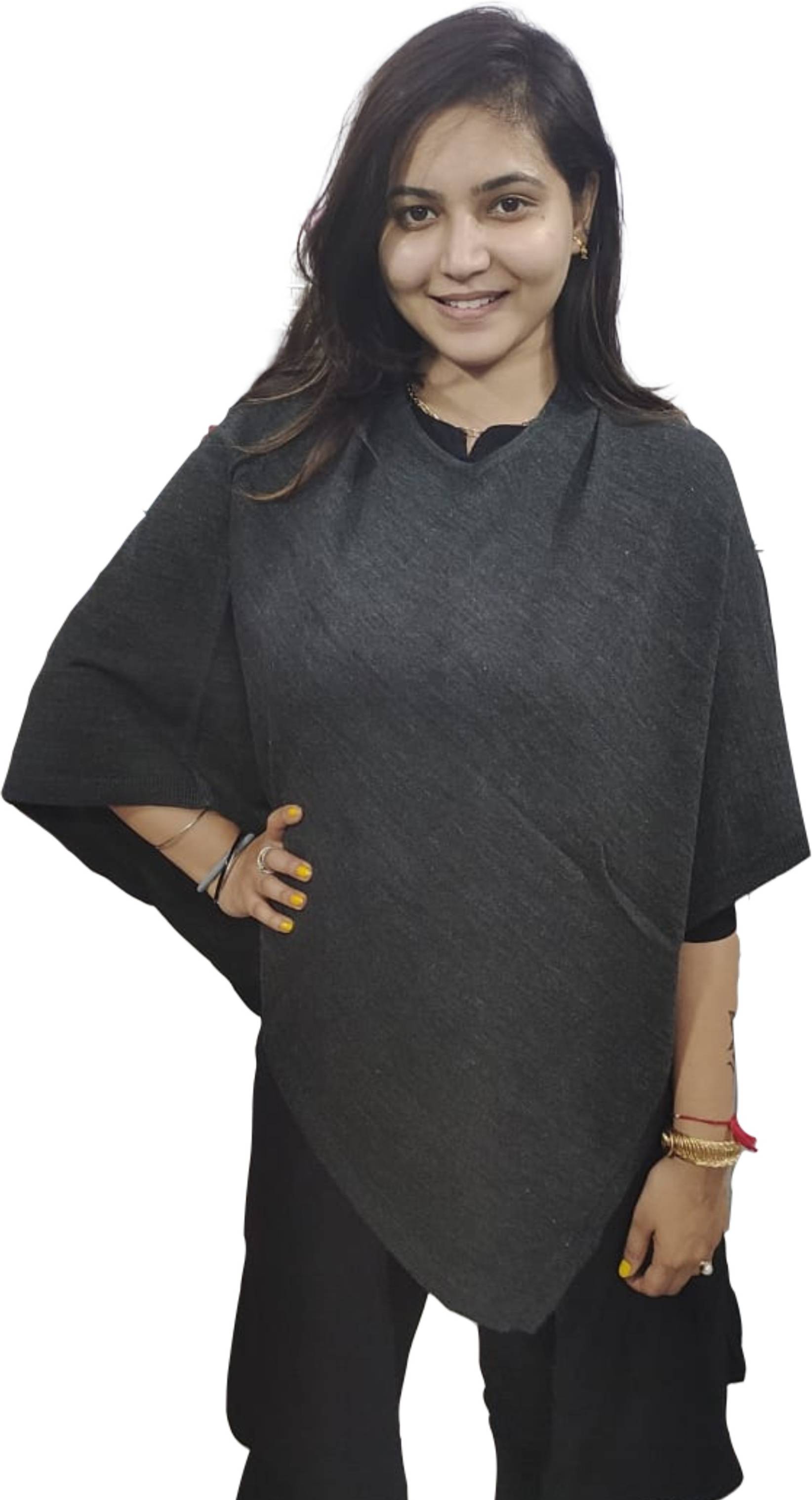 Poncho in Black color having Acrylic, nylon, and wool (Soft & warm) fabric which is skin-friendly and easy to wash. This pretty Poncho will add to your style and ensures supreme comfort