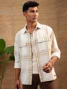 LOCOMOTIVE Men Checkered Casual Gold Shirt